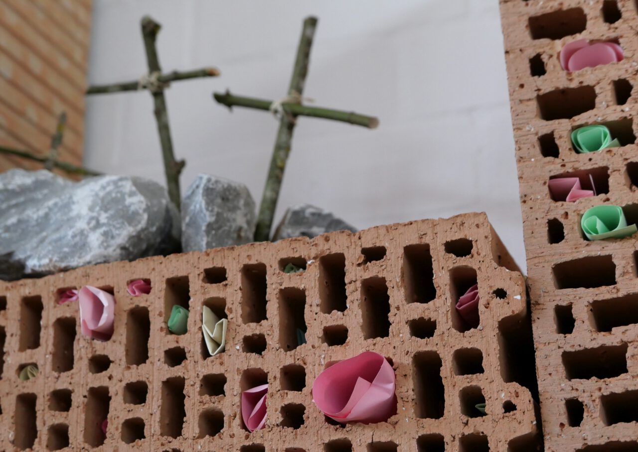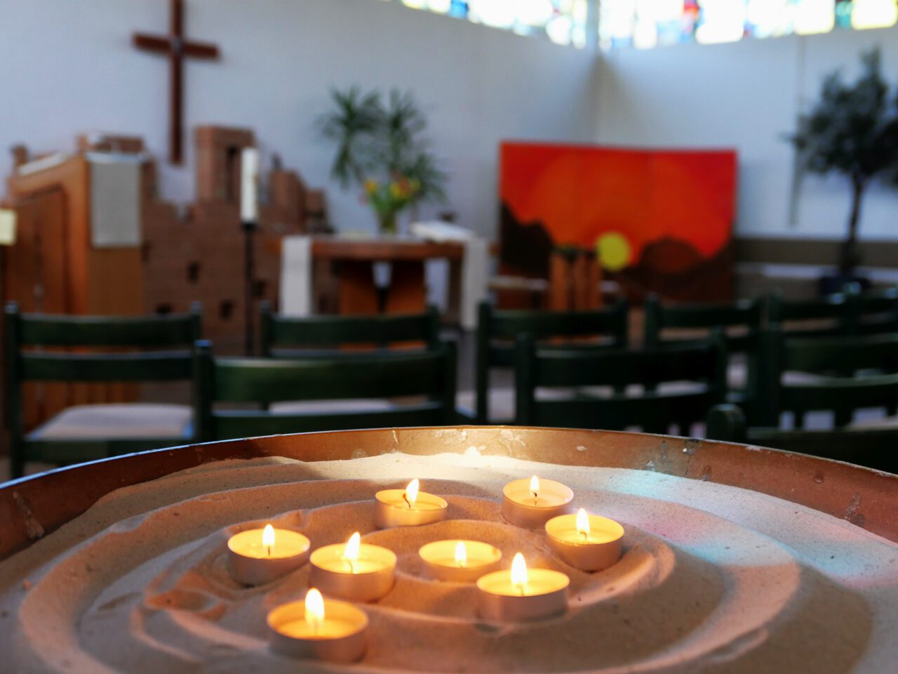 Im Gotteshaus setzen sich die Eingetreten dann nicht unbedingt, sondern bewegen sich noch weiter. Sie folgen einem mit Holzschnitzeln im Raum ausgelegten Pilgerweg. Dabei stecken sie persönliche Worte in eine Klagemauer, zünden eine Kerze an oder legen ein Rosenblatt auf eine Wasserfläche. Die Stationen entsprechen den Elementen des Gottesdienstes. “Es ist aber ein Gottesdienst in persönlicher Form”, sagt Jäger. “Man kann so lange und so intensiv wie man will an einer Station bleiben.”