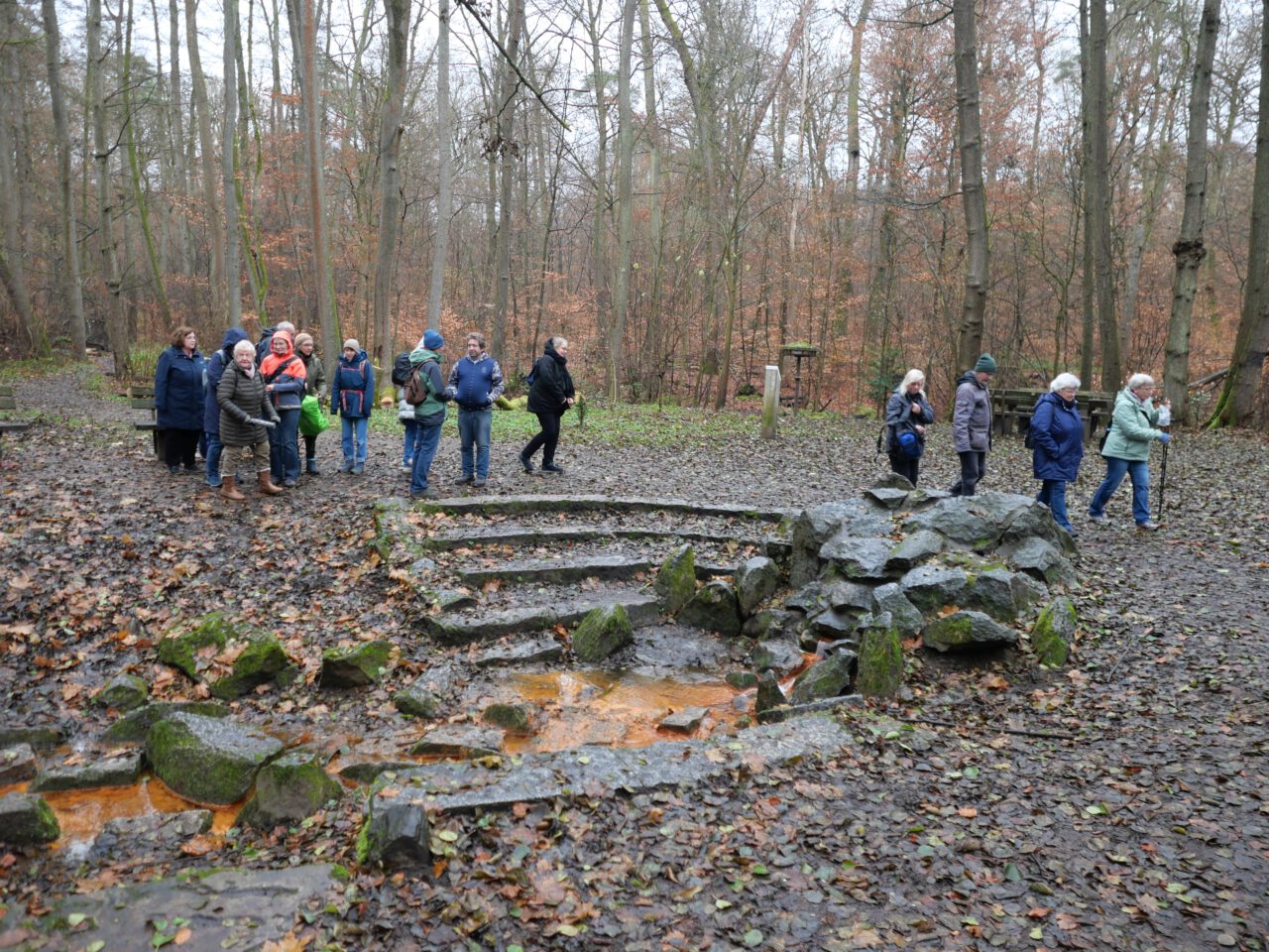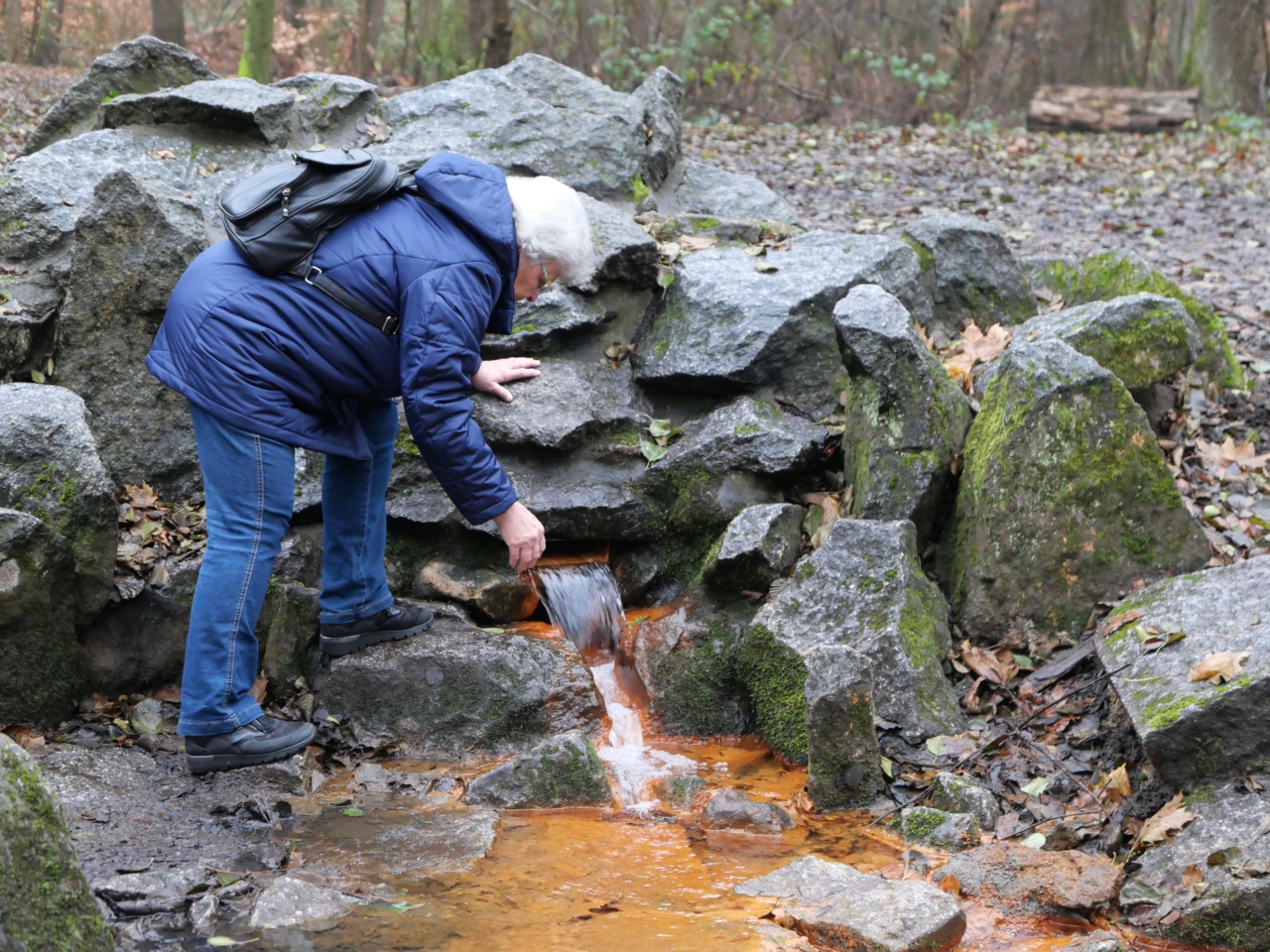 Stille in Frankfurt? Geht nicht, auch das ist eine gewohnte Ansicht. Klar, da sind Flugzeuge während des schweigend zurückgelegten Teils der Tour zu hören. Genauso aber Wasservögel, die der friedlich sanften Fläche des Jacobiweihers einen verspielten Wellengang bescheren. Am Königsbrünnchen zeigt sich: Stark eisenhaltiges Wasser inklusive Schwefelwasserstoff schmeckt nicht nach Glühwein, scheint aber bei Schlafproblemen zu helfen. Frankenkönig Ludwig III. soll hier nach Genuss des Wassers in einen komaähnlichen Schlaf gefallen sein. Und versöhnte sich am nächsten Tag mit seiner Frau.