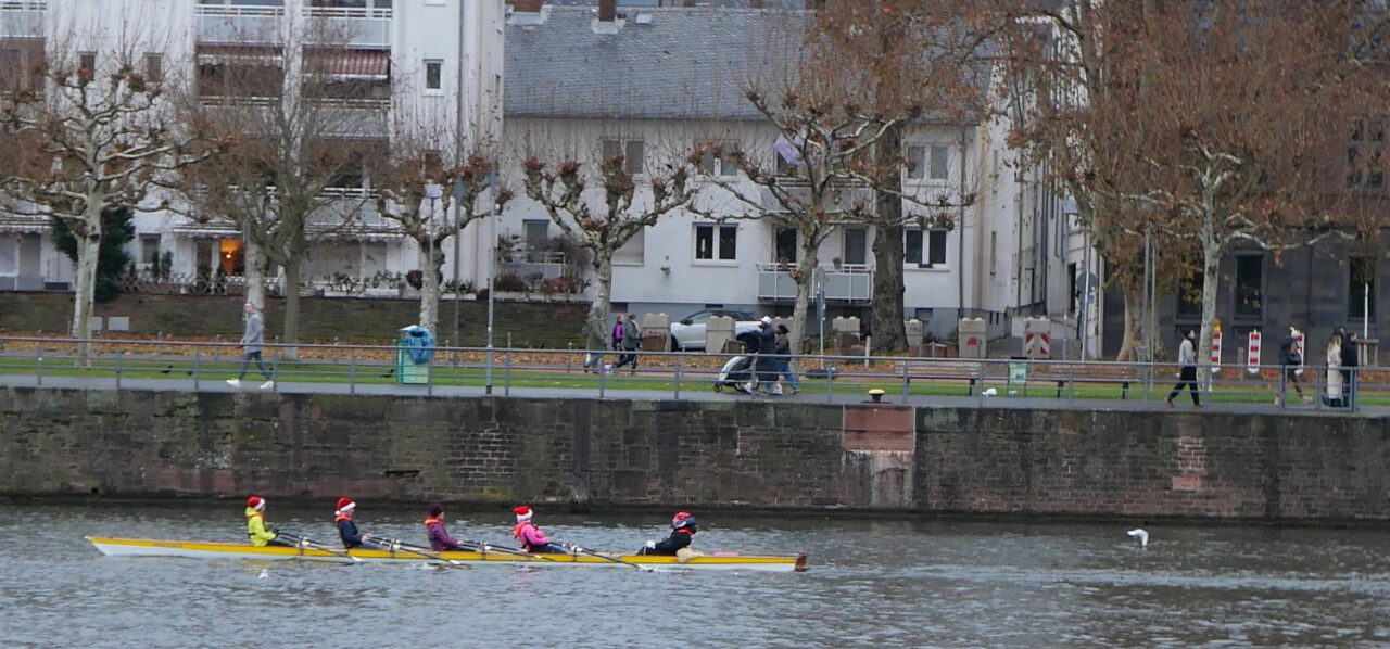 Und ja, das gehört womöglich zu der auffälligsten Folge der Nikolaus-Revolution an diesem Tag: Weihnachten, Advent und Nikolaus – das alles sei doch heute längst schon nicht mehr richtig. Weil Kitsch und Kommerz den wahren Sinn vermasselten. Allein die Mützen! Völlig lächerlich! Nikolaus trug als Bischof eine Mitra! Warum haben die Ruderer keine Mitra auf dem Kopf? Der Ansicht eines korrekt zu feiernden Weihnachten hängen viele an, vielleicht sogar alle, mal weniger, mal mehr. Sie weist der Freude nach, wie oberflächlich sie doch sei. Und vergällt dabei meist die eigene. Doch Nikolaus scheint in der Lage zu sein, sebst sehr aktiven Gallenblasen eine gnadenreiche Pause zu gönnen.