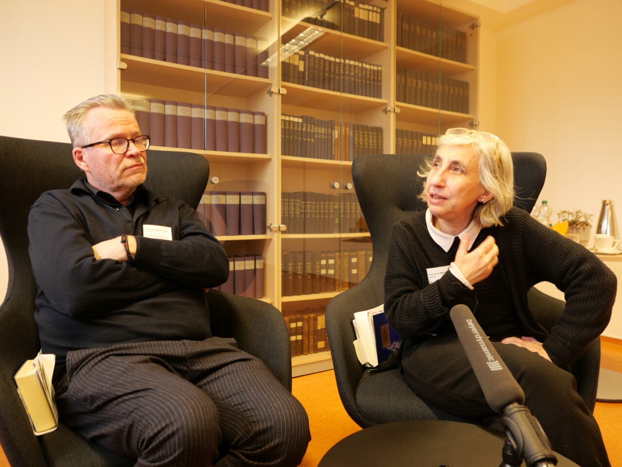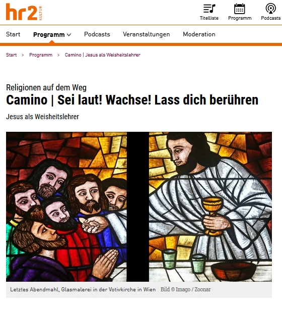 In der Sendung “Sei laut! Wachse! Lass dich berühren” des Theologen und Schriftstellers Georg Magirius wirkt auch Egbert Ballhorn mit, Professor für Bibelwissenschaft der TU Dortmund und Vorsitzender des Katholischen Bibelwerks. Das Feature unter Redaktion von Dr. Lothar Bauerochse sprechen Torsten Flassig und Claudia Jacobucci. Das Produktions-Management liegt bei Maria Anna Bopp. Die Aufnahmeleitung hat Aran Kleebaur. Die Harfenistin Lavinia Meijer begleitetet die Gedanken der Sendung mit Stücken von Philip Glass. Angeregt ist die Sendung vom Buch “Leuchte. Wachse. Gehe deinen Weg”. Die Sendung als Podcast lässt sich jetzt hier hören. Die Fotos vom HR-Interview mit Paraskevi Mavrogiorgou-Juckel und Georg Juckel stammen von (c) Georg Magirius.